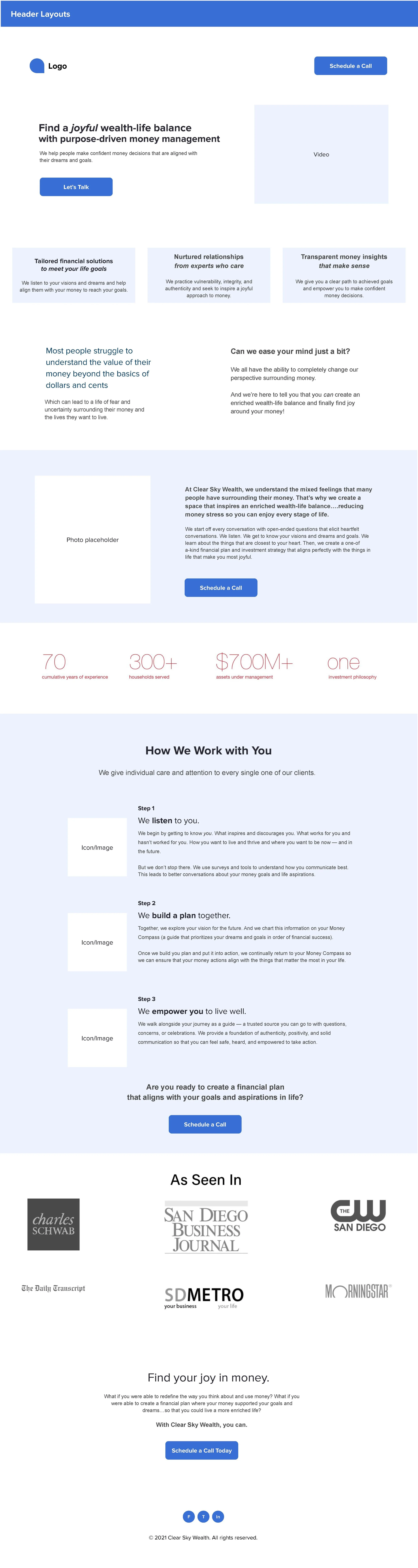 My work with Clear Sky Wealth started off a little bit different than my usual one-off copywriting clients. They were a Wealth Management Company, looking for a marketing specialist who could help them create website copy, social media content, blogs, LinkedIn bios…and so much more.